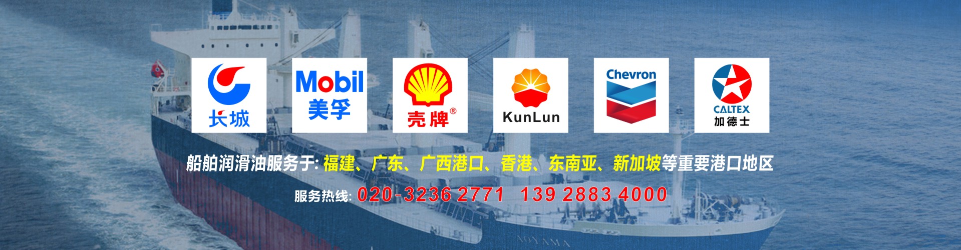 公司代理中石化長城潤滑油以及中石化國際品牌SINOPEC潤滑油,經銷品牌有昆侖牌、殼牌(SHELL)美孚(MOBIL)加德士(CALTEX)雪佛龍(CHEVRON)是船舶潤滑油以及船舶輔助用油的的集成服務平臺,也可按照船東要求提供船舶消防救生用品、勞保用品、五金燈具及甲板用品等船舶配套產品。